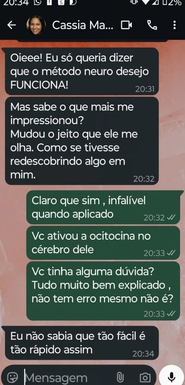 Você está prestes a acessar um método neurocientífico testado e comprovado que faz qualquer homem pensar em você o dia inteiro, e é capaz de transformar sua presença em algo viciante para ele em menos de 1 mês, através da ativação dos hormônios do amor e do prazer no cérebro dele.