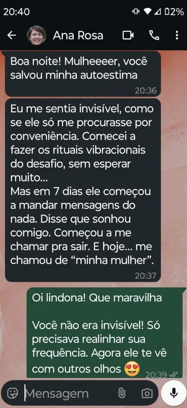 Objetivo: Reprogramar sua energia, alinhar a frequência vibracional, plantar sua imagem na mente dele.